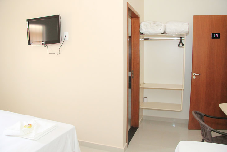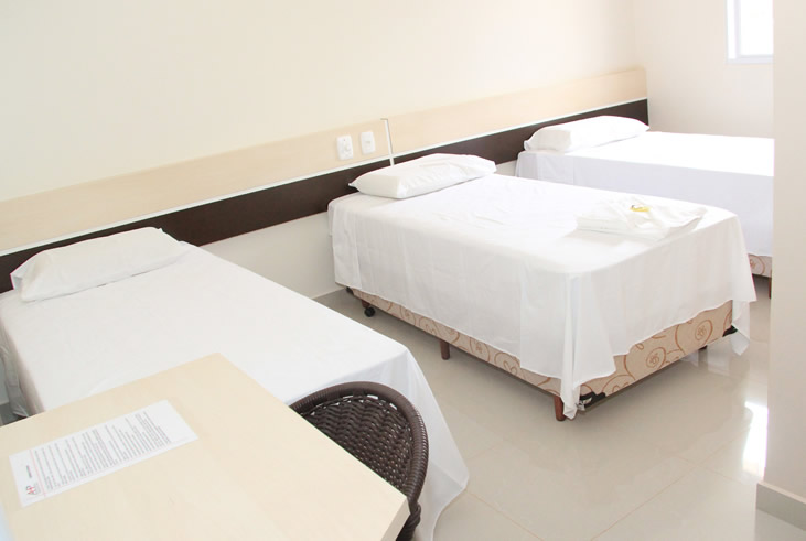 Nosso hotel disponibiliza apartamentos individuais, duplos e triplos.